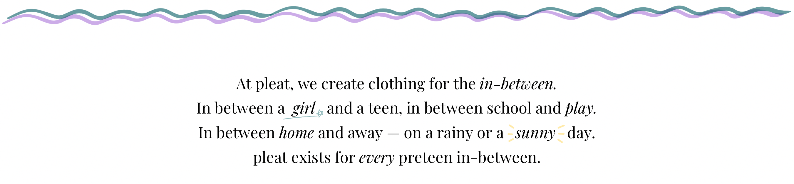 “Pleat was founded on the belief that everyday, elevated, and effortless styles can exist for tween girls. It was a study in contradictions – I wanted it to be classic and traditional, yet modern, feminine, and cutting edge. I wanted it to be sophisticated, yet encompass the innocence and freedom of youth. I wanted it to be elevated yet still very appropriate. Above all? I wanted to create clothing that both mom and daughter agreed on...!”